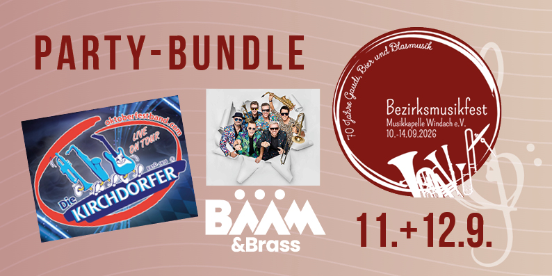 18:30 Einlass | 20:00 Partyband „BÄÄM & Brass“ aus Österreich | 24:00 DJ Melodix